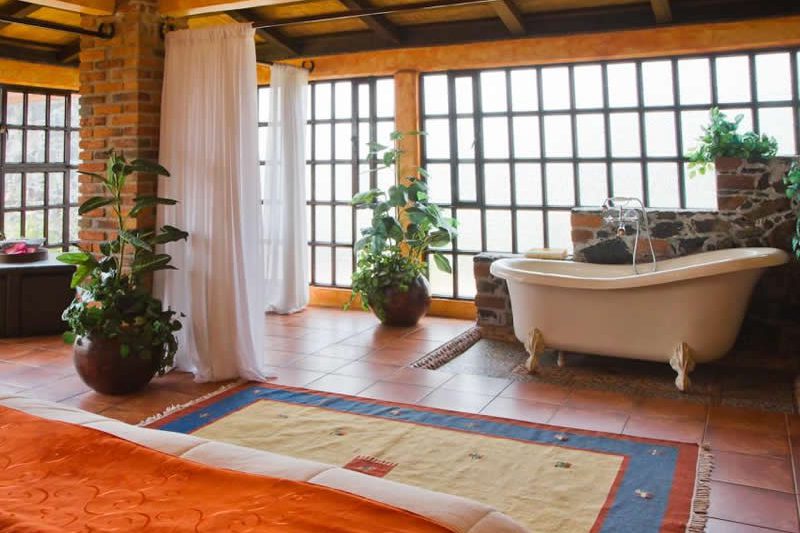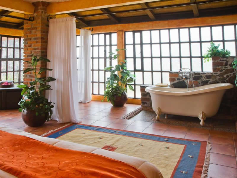 Rancho Las Cascadas was built in a beautiful setting on high plains, surrounded by mountain tops, right in the very heart of Mexico at 7’500 ft above sea level. It’s easy to get here. Most flights take you directly to Mexico City International Airport. We are 50 miles from there. Pick up will be arranged and in less than 2 hours you’re at the ranch. Our guest houses and rooms are built of handcrafted stones. All the rooms are decorated in Mexican Country Style with lots of love to details.